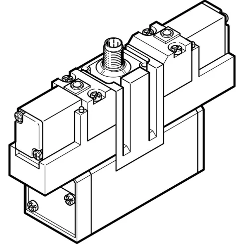 Распределитель с электроуправлением Festo JMEBDH-5/2-D-3-ZSR-C —стандартный распределитель с электромагнитным управлением. С двусторонним управлением, центральным разъемом M12x1 и доминирующим сигналом.